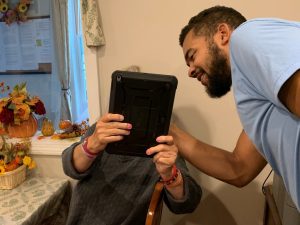 Our assistive technology program provides a way for our residents to connect socially. By giving them access to the internet, it provides them with the opportunity to connect with family through video chats or emails. It also gives them a way to reconnect with the world around them and learn about what is going on in the news today and keep them up to date about current events.